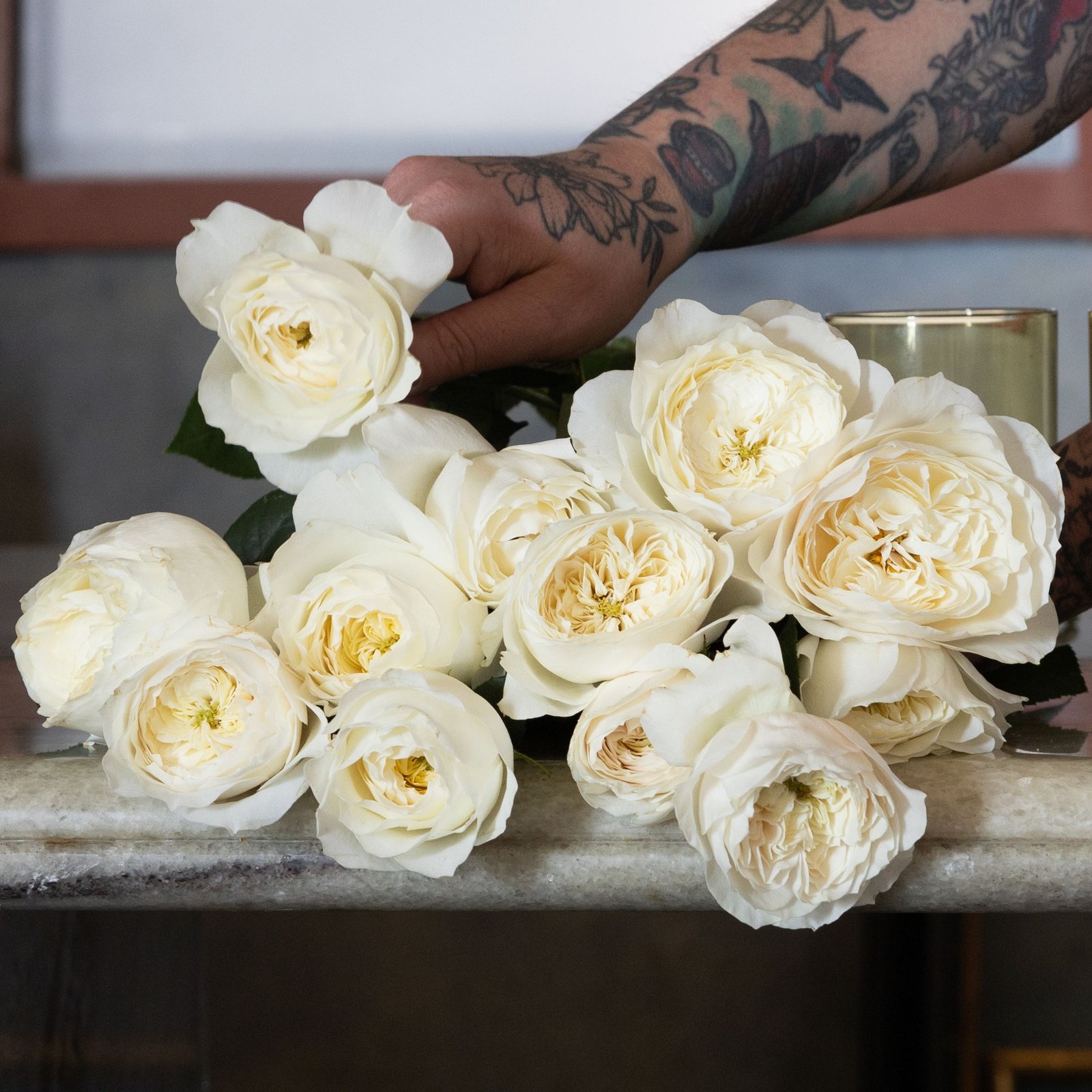 - Precious cargo – Roses ship with a protective corrugate wrap. Upon arrival, give the stems a fresh trim and allow them to hydrate with the corrugate on for at least two hours before unwrapping and styling.